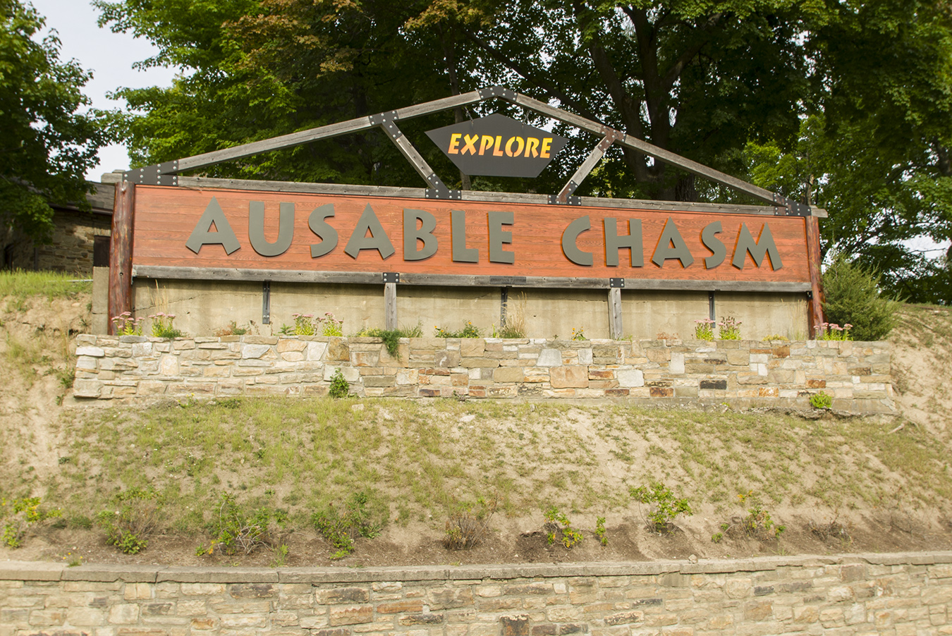 From the Hamlet of Jay, we headed east towards Lake Champlain, to take a look at the world famous Ausable Chasm..The oldest natural attraction in the United States (est. 1870), the sites of the chasm are breathtaking. Formed of sandstone that is 500 million years old from the Cambrian period. More than 10 million visitors have explored the chasm on the well-maintained scenic nature trails. Scenic vistas, bridges and stairs throughout provide stunning views of the chasm and amazing waterfalls. We had driven past the location a few years back enroute to The White Mountains in New Hampshire, but had not explored the trails.